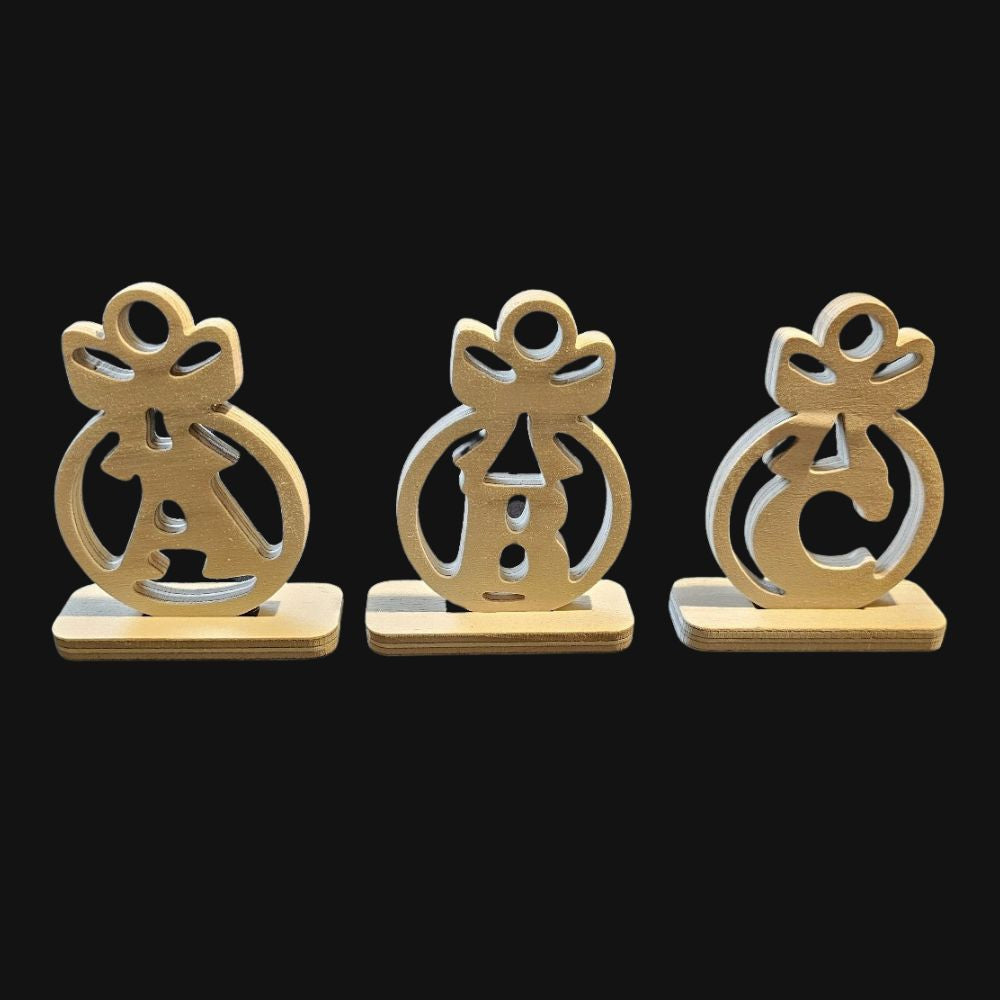 Rien n'est plus chaleureux qu'un Noël personnalisé. Ces adorables boules en bois, découpées en forme de lettres ornées d'un nœud festif, apportent une touche naturelle et authentique à vos fêtes.