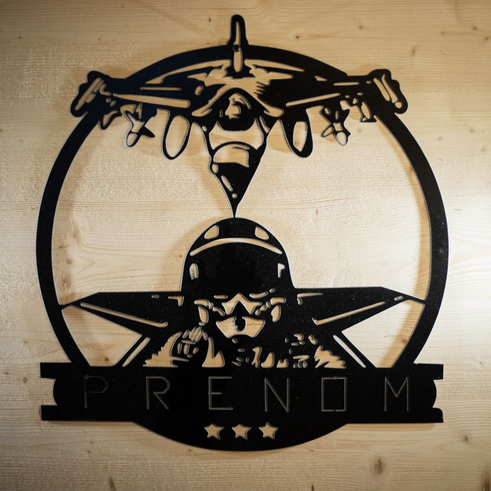 "Paré au décollage ?" Pour un passionné d'aéronautique, petit ou grand, la chambre est bien plus qu'une pièce : c'est un cockpit. Cette décoration murale spectaculaire met en scène la puissance d'un avion de chasse en piqué et la concentration du pilote. Le détail qui change tout ? La personnalisation. En inscrivant le prénom de votre choix, vous transformez cette œuvre en une pièce unique, dédiée à votre "As" du manche.